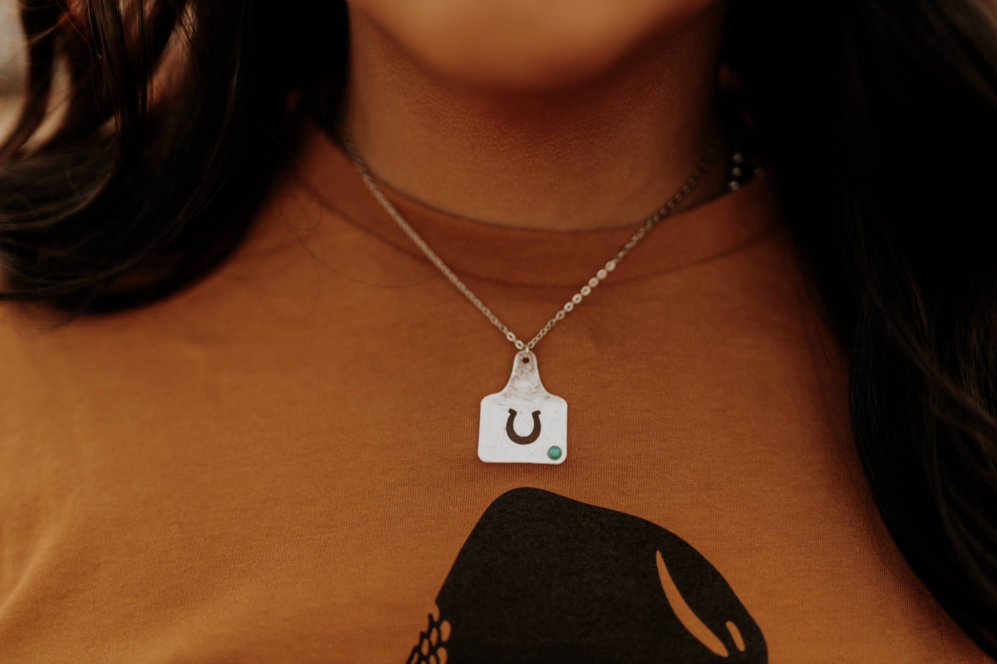Turquoise Horseshoe Cattle Tag Necklace